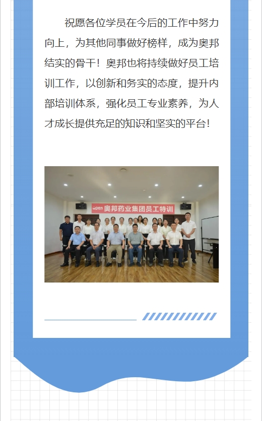 “奧”視群雄,濟(jì)世安“邦”—奧必青?鹽酸西替利嗪片以第一順位中標(biāo)第三批國家集采 奧邦培訓(xùn)學(xué)院“拍了拍”你—奧邦新人們 四川奧邦醫(yī)藥貿(mào)易有限公司年中總結(jié)會(huì)議在蓉召開 鹽酸西替利嗪片成功獲批國家一致性評(píng)價(jià) 瑞德西韋等五種抗病毒藥物原料藥項(xiàng)目落戶成都奧邦藥業(yè) 奧邦藥業(yè)集團(tuán)熱烈祝賀華西藥學(xué)院百年誕辰! “只有優(yōu)質(zhì)品,才是合格品”——奧邦的產(chǎn)品理念 校企行 | 四川大學(xué)研究生走進(jìn)奧邦藥業(yè)集團(tuán) 學(xué)術(shù)速遞 | 四川省藥學(xué)會(huì)藥劑專業(yè)委員會(huì)2020年學(xué)術(shù)年會(huì)在我司成功召開 疫亂交織 正道致遠(yuǎn)——回眸2020年的世界 我國將對(duì)第二批抗癌藥和罕見病藥品原料等實(shí)行零關(guān)稅 “十四五”醫(yī)藥工業(yè)發(fā)展路徑已明 七大目標(biāo)了解一下 國家藥監(jiān)局長三角、大灣區(qū)四個(gè)審評(píng)檢查分中心掛牌成立 國家醫(yī)保局 人力資源社會(huì)保障部關(guān)于印發(fā)《國家基本醫(yī)療保險(xiǎn)、工傷保險(xiǎn)和生育保險(xiǎn)藥品目錄 (2020年)》的通知 致敬風(fēng)雨,感恩有您:奧邦藥業(yè)2020年度工作述職暨表彰大會(huì)隆重召開 首發(fā):奧邦藥業(yè)攜多款重磅產(chǎn)品亮相浙江省藥械展 又?叒叕,利爾藥業(yè)拿下首家急搶救藥品(氨甲環(huán)酸注射液)一致性評(píng)價(jià)批文 捷報(bào)頻傳,奧邦藥業(yè)又拿下一個(gè)超十億規(guī)模的一致性評(píng)價(jià)產(chǎn)品 奧邦藥業(yè)大擺人才盛宴,您期待的都在這里 妥妥的“別人家公司”,奧邦藥業(yè)健身房正式開放啦 熱烈祝賀奧邦藥業(yè)參加的第87屆中國國際醫(yī)藥/中間體/包裝/設(shè)備交易會(huì)取得圓滿成功! 奧邦藥業(yè)磺達(dá)肝癸鈉最新進(jìn)展:已完成工藝驗(yàn)證,即將提交申報(bào)資料 成都市應(yīng)急管理局黨委委員、副局長葉永清局長帶隊(duì)現(xiàn)場安全檢查指導(dǎo) 一年過三,四川這家企業(yè)實(shí)力不一般 喜報(bào)!熱烈祝賀成都栩哲金帥江博士入選2021年成都市“蓉漂計(jì)劃”青年創(chuàng)新人才 奧邦藥業(yè)集團(tuán)舉行管理干部晉升競聘演講會(huì) 激流勇進(jìn) 未來可期 ——奧邦藥業(yè)集團(tuán)董事長、總經(jīng)理歲末年初發(fā)表重要講話 奧邦藥業(yè)2021年年度表彰大會(huì)隆重召開 合作、共贏 ——奧邦藥業(yè)集團(tuán)與川內(nèi)同行企業(yè)召開座談會(huì) 扎根、破局、革新 ——記奧邦醫(yī)貿(mào)2021年銷售年會(huì) 國家藥監(jiān)局綜合司關(guān)于啟用原料藥生產(chǎn)供應(yīng)信息采集模塊的通知 藥監(jiān)綜藥管〔2021〕96號(hào) 國家藥監(jiān)局關(guān)于印發(fā)《藥品檢查管理辦法(試行)》的通知 國藥監(jiān)藥管〔2021〕31號(hào) 國家醫(yī)保局 人力資源社會(huì)保障部關(guān)于印發(fā)《國家基本醫(yī)療保險(xiǎn)、工傷保險(xiǎn)和 生育保險(xiǎn)藥品目錄(2021年)》的通知 國家醫(yī)療保障局 國家中醫(yī)藥管理局關(guān)于醫(yī)保支持中醫(yī)藥傳承創(chuàng)新發(fā)展的指導(dǎo)意見 市場監(jiān)管總局關(guān)于推進(jìn)企業(yè)信用風(fēng)險(xiǎn)分類管理 進(jìn)一步提升監(jiān)管效能的意見 強(qiáng)化質(zhì)量意識(shí),推進(jìn)GMP常態(tài)化 ——奧邦藥業(yè)集團(tuán)質(zhì)量培訓(xùn)會(huì)開訓(xùn)儀式暨第一次培訓(xùn)課程順利開展 熱烈歡迎!華夏銀行成都分行鄧行長一行蒞臨奧邦藥業(yè)集團(tuán)考察交流 國家藥監(jiān)局綜合司關(guān)于印發(fā)關(guān)于〈中華人民共和國藥品管理法〉第一百一十七條第二款適用原則的指導(dǎo)意見》的通知 國家藥監(jiān)局關(guān)于發(fā)布仿制藥參比制劑目錄(第五十一批)的通告(2022年 第9號(hào)) 市場監(jiān)管總局關(guān)于印發(fā)《“十四五”市場監(jiān)管科技發(fā)展規(guī)劃》的通知 市場監(jiān)管總局關(guān)于印發(fā)《2022年重點(diǎn)工業(yè)產(chǎn)品 質(zhì)量安全排查治理專項(xiàng)行動(dòng) 工作方案》的通知 市場監(jiān)管總局辦公廳關(guān)于 特種設(shè)備行政許可有關(guān)事項(xiàng)的通知 市場監(jiān)管總局關(guān)于發(fā)布國家標(biāo)準(zhǔn)物質(zhì)的公告 國家醫(yī)療保障局令 喜報(bào)!熱烈祝賀成都栩哲金帥江博士入選四川省“峨眉計(jì)劃”青年人才名單 一圖了解:支持小微企業(yè)發(fā)展,2022年“六稅兩費(fèi)”減免政策再添力 中國癌癥日——第28屆全國腫瘤防治宣傳周 奧邦?琥珀酸亞鐵片名師直播課 | 邀您參與 喜報(bào)!奧邦集團(tuán)丙戊酸鈉注射用濃溶液正式獲批 國家藥監(jiān)局關(guān)于印發(fā)《藥品年度報(bào)告管理規(guī)定》的通知 國家藥監(jiān)局關(guān)于印發(fā)《藥物警戒檢查指導(dǎo)原則》的通知 四川助企紓困 政策明白卡 “唯優(yōu)質(zhì)為合格” 奧邦堅(jiān)持質(zhì)量管理鑄品牌 對(duì)標(biāo)世界一流體系 妊娠期IDA的危害與治療原則 認(rèn)清責(zé)任與使命 | 奧邦藥業(yè)2022年第四次質(zhì)量培訓(xùn)如期進(jìn)行 喜報(bào)!??!奧邦藥業(yè)氨甲環(huán)酸注射液新規(guī)格獲批上市,成為目前全國最全品規(guī)生產(chǎn)企業(yè) 關(guān)于擴(kuò)大全額退還增值